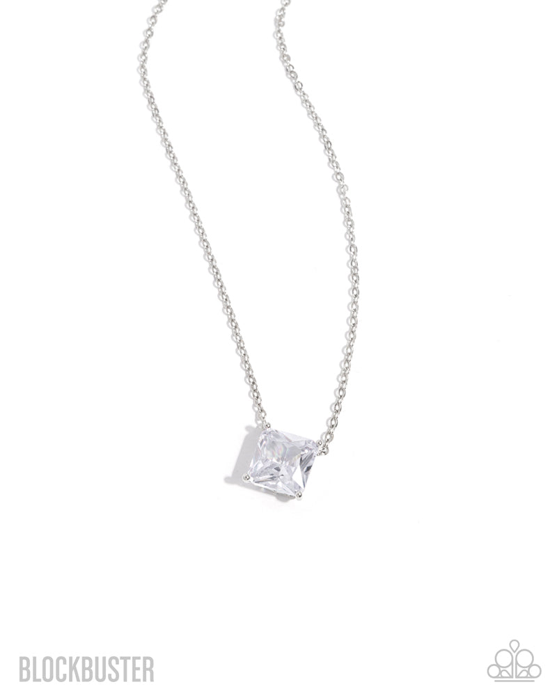 Featuring a timeless princess-style cut, a dramatic white cubic zirconia is pressed into sleek silver-pronged fittings below the neckline on a classic chain for a statement-making shimmery look. Features an adjustable clasp closure.
